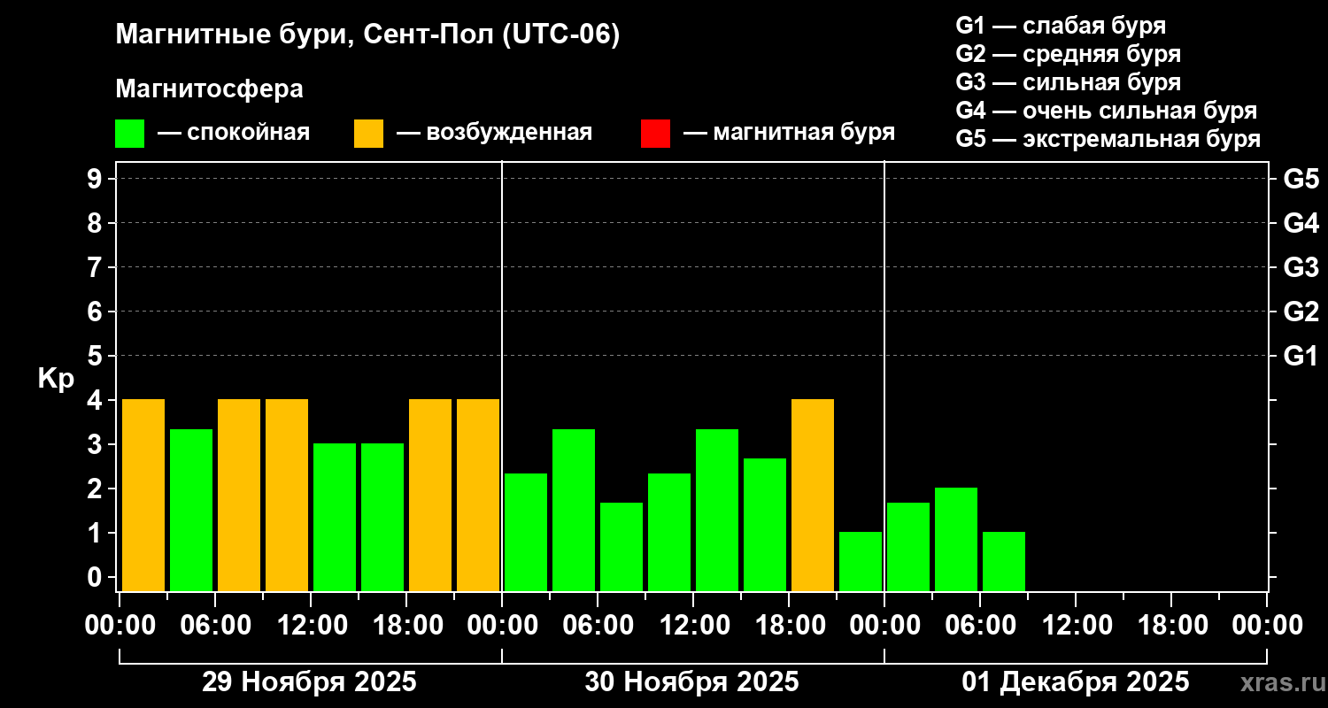 Магнитные бури в Сент-Поле — 1 декабря 2025 года