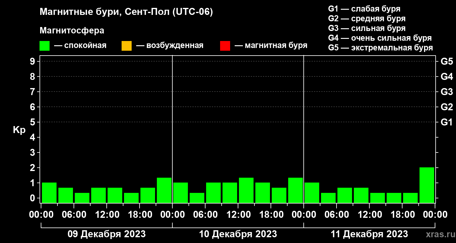 Магнитные бури в Сент-Поле 11 декабря 2023 года
