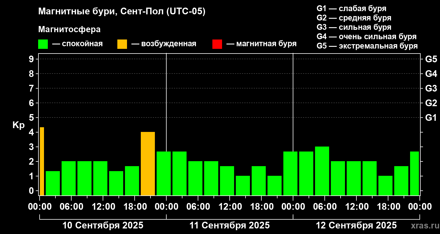 Магнитные бури в Сент-Поле 12 сентября 2025 года