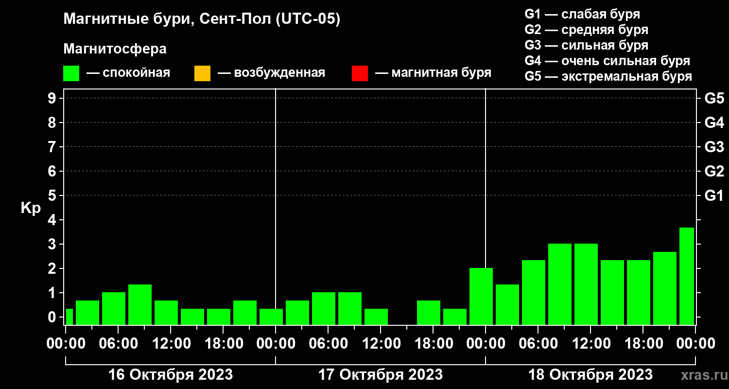 Магнитные бури в Сент-Поле 18 октября 2023 года