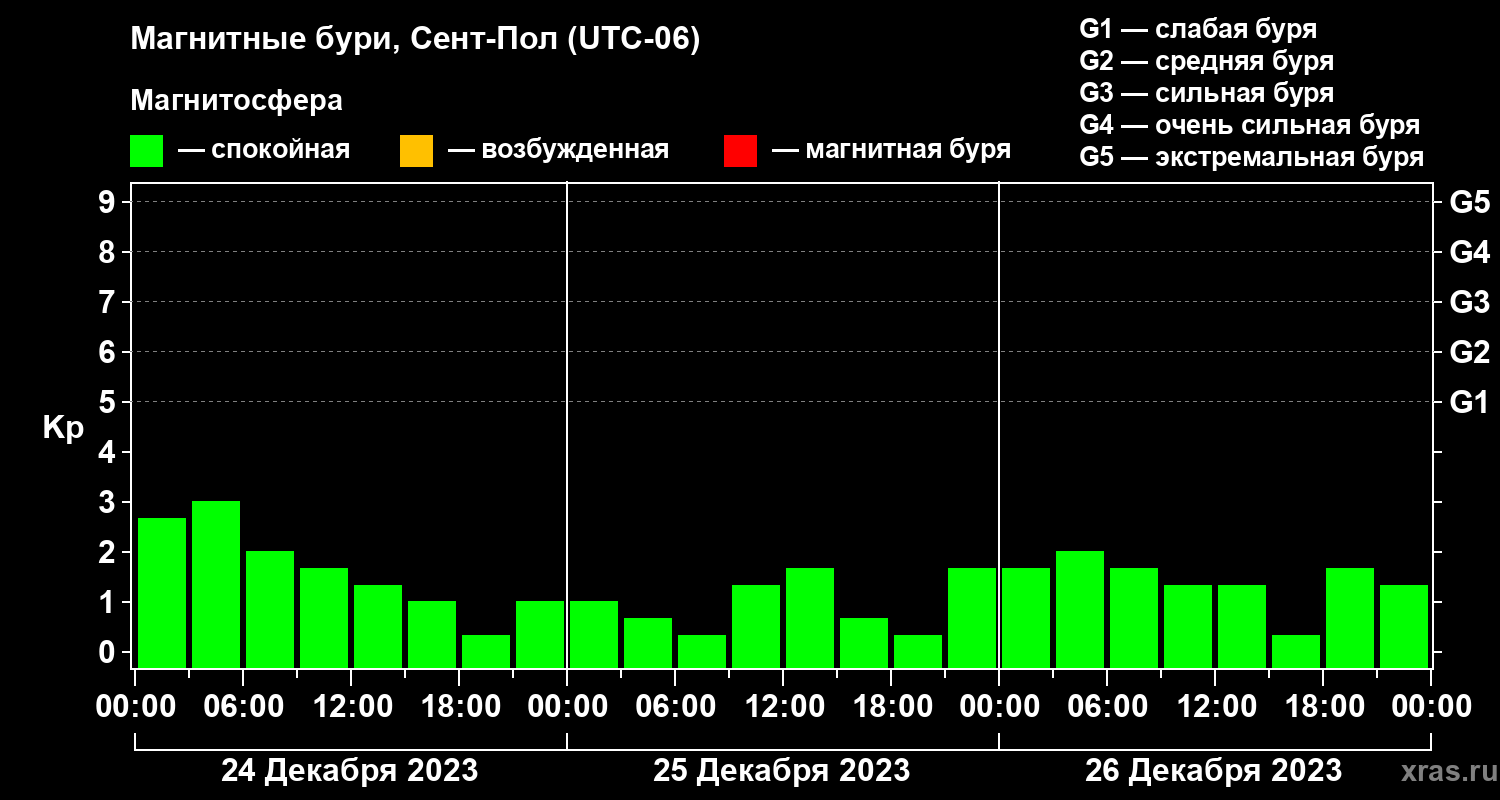 Магнитные бури в Сент-Поле — 26 декабря 2023 года