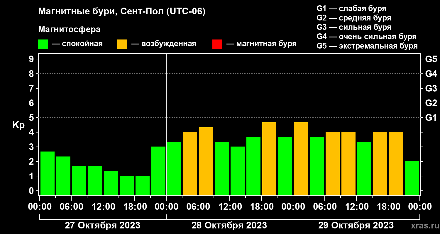 Магнитные бури в Сент-Поле 29 октября 2023 года