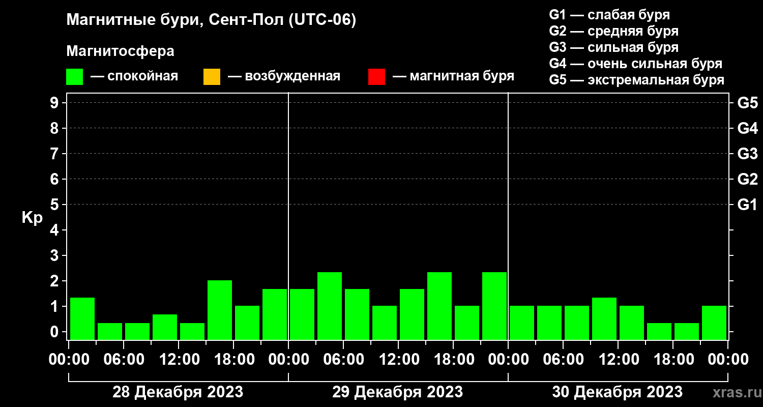 Магнитные бури в Сент-Поле 30 декабря 2023 года