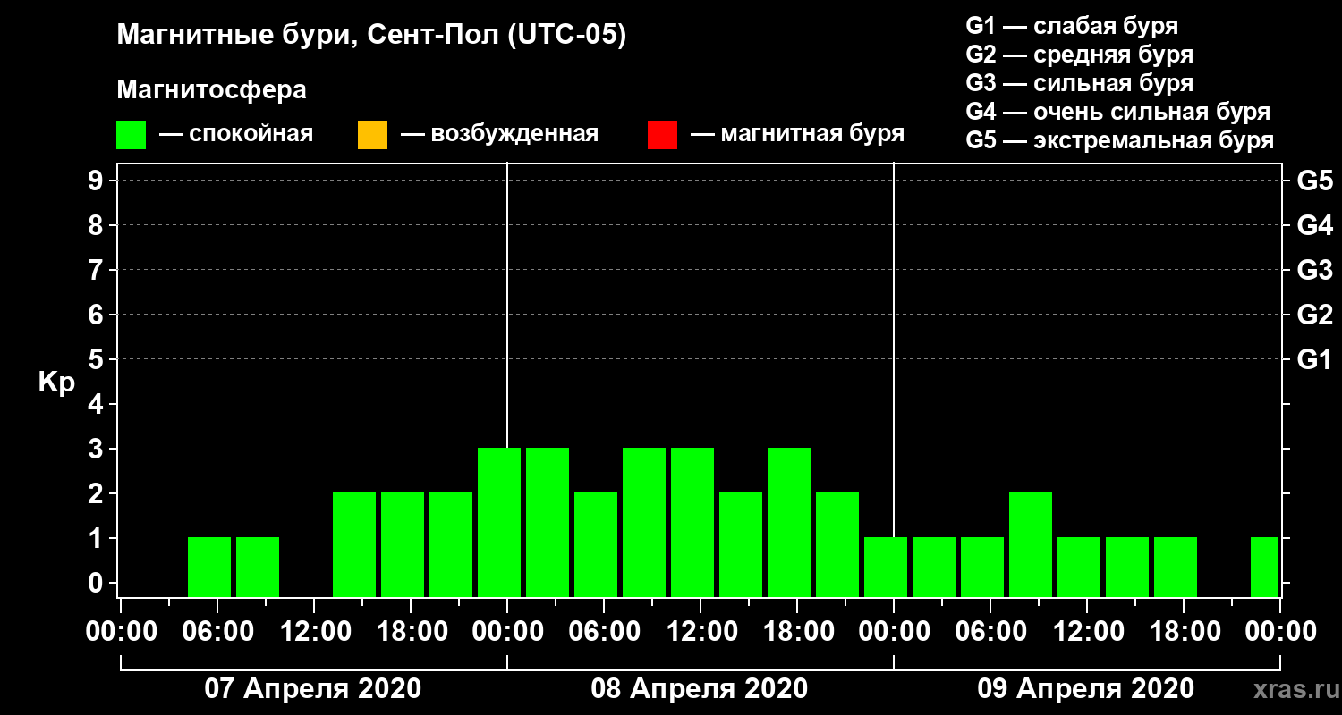 Магнитные бури в Сент-Поле — 9 апреля 2020 года