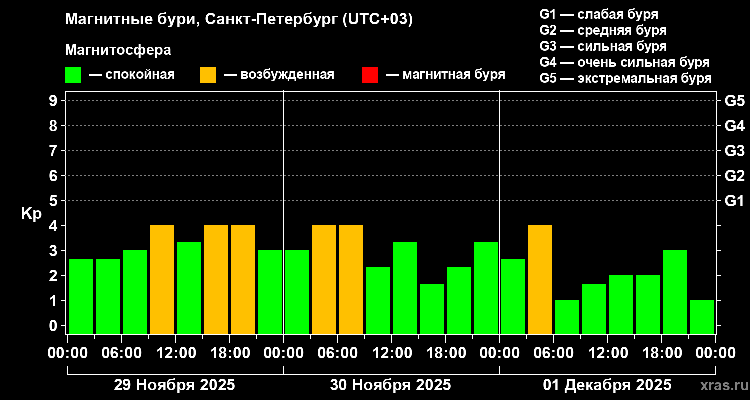Магнитные бури в Санкт-Петербурге — 1 декабря 2025 года