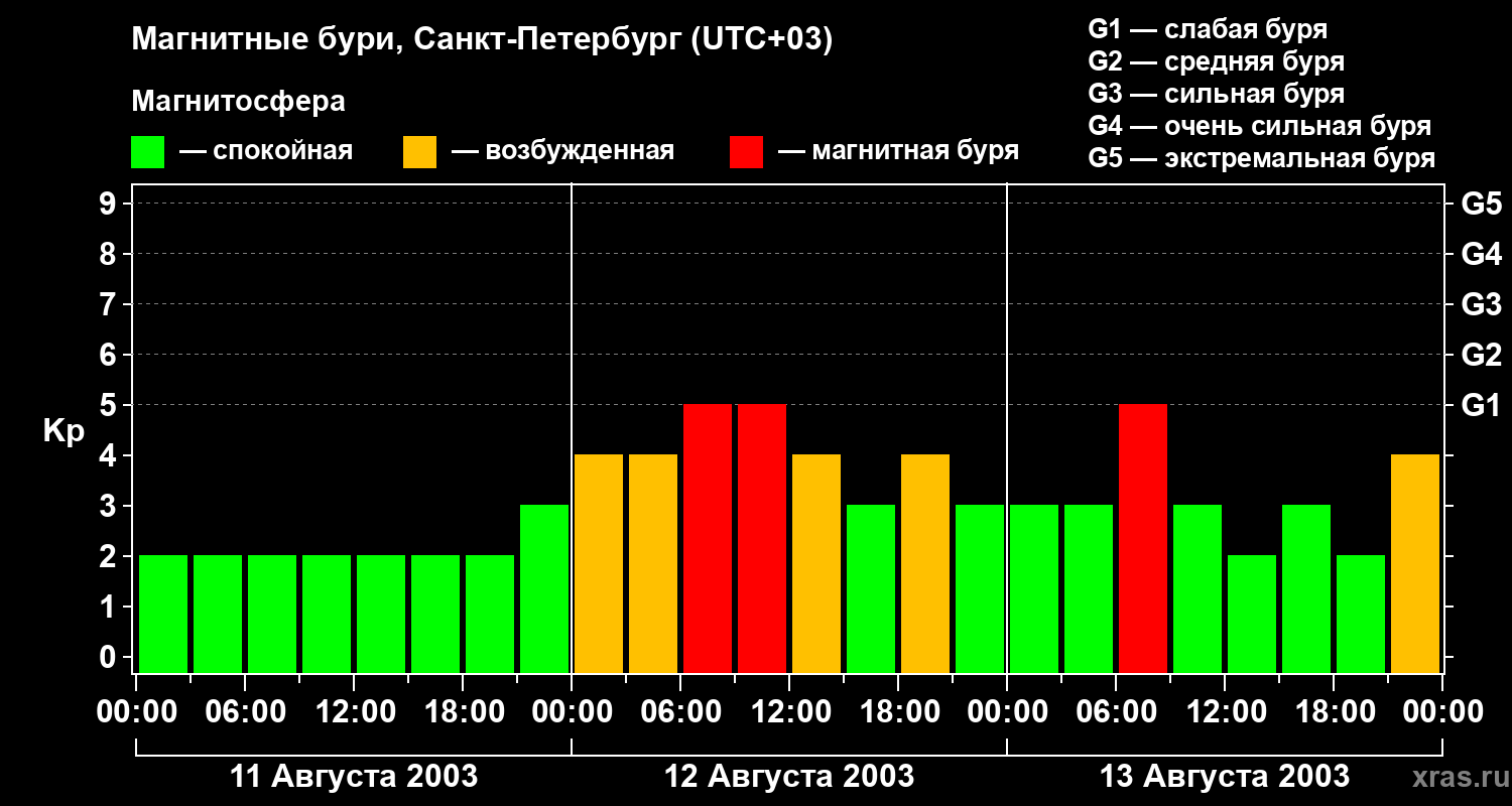 Магнитные бури в Санкт-Петербурге — 13 августа 2003 года