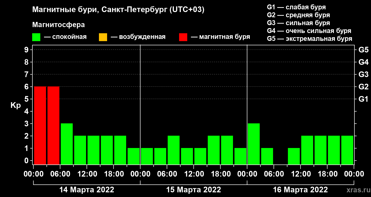 Магнитные бури в Санкт-Петербурге — 16 марта 2022 года