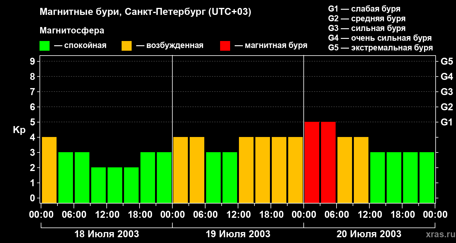 Магнитные бури в Санкт-Петербурге — 20 июля 2003 года