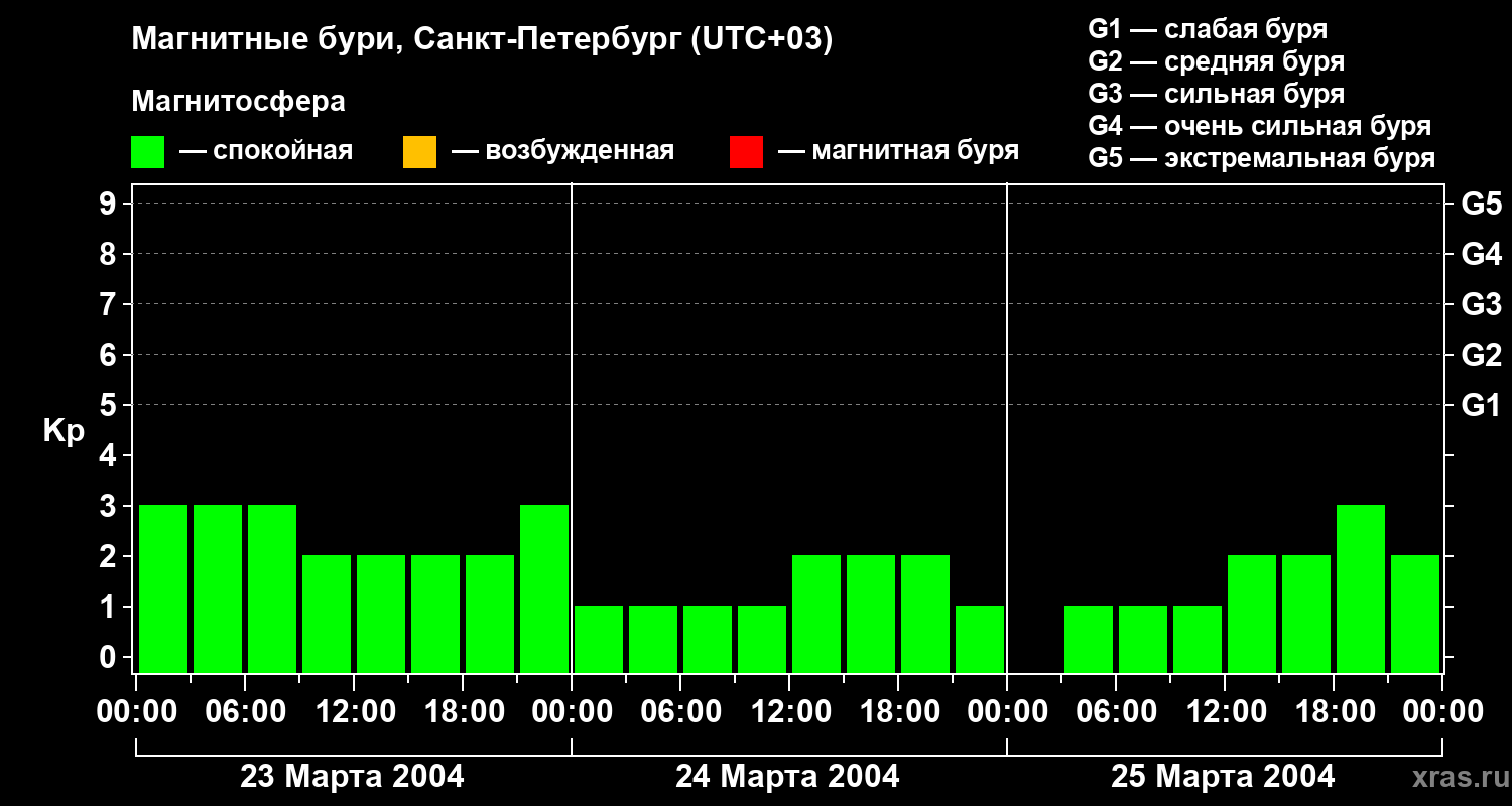 Магнитные бури в Санкт-Петербурге — 25 марта 2004 года