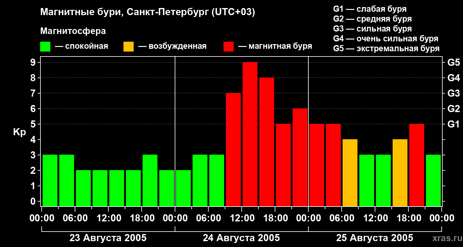 Магнитные бури в Санкт-Петербурге — 25 августа 2005 года