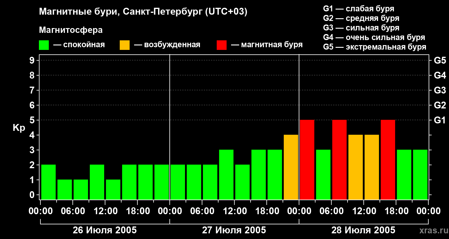 Магнитные бури в Санкт-Петербурге — 28 июля 2005 года