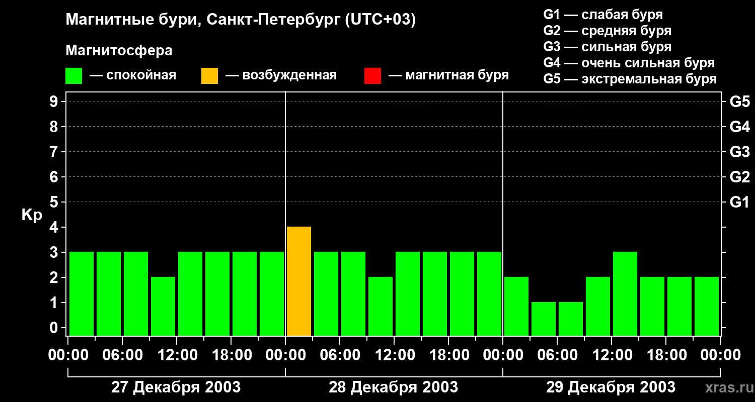 Магнитные бури в Санкт-Петербурге — 29 декабря 2003 года