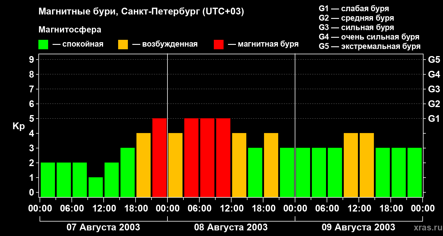 Магнитные бури в Санкт-Петербурге — 9 августа 2003 года