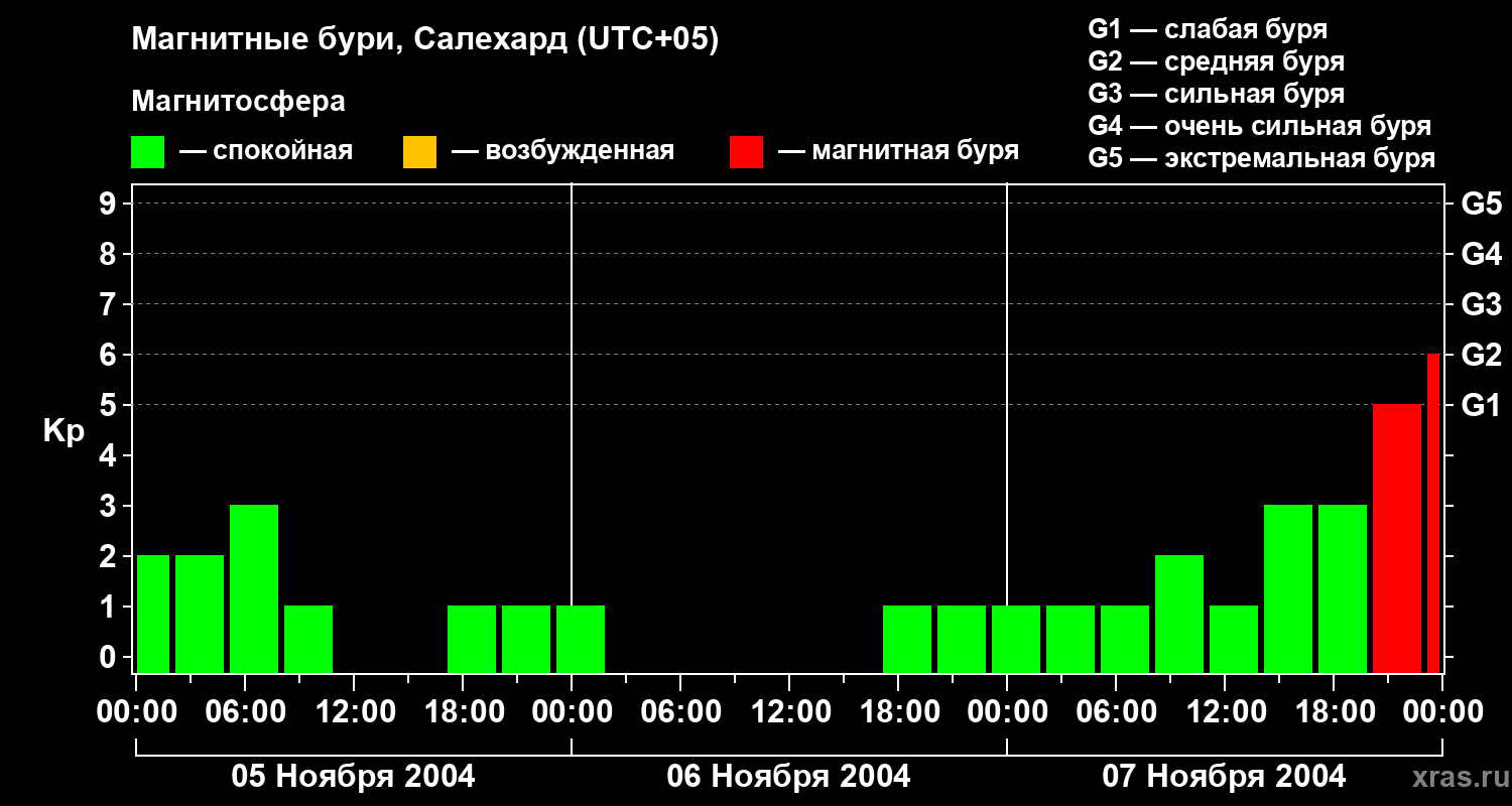 Магнитные бури в Салехарде — 7 ноября 2004 года