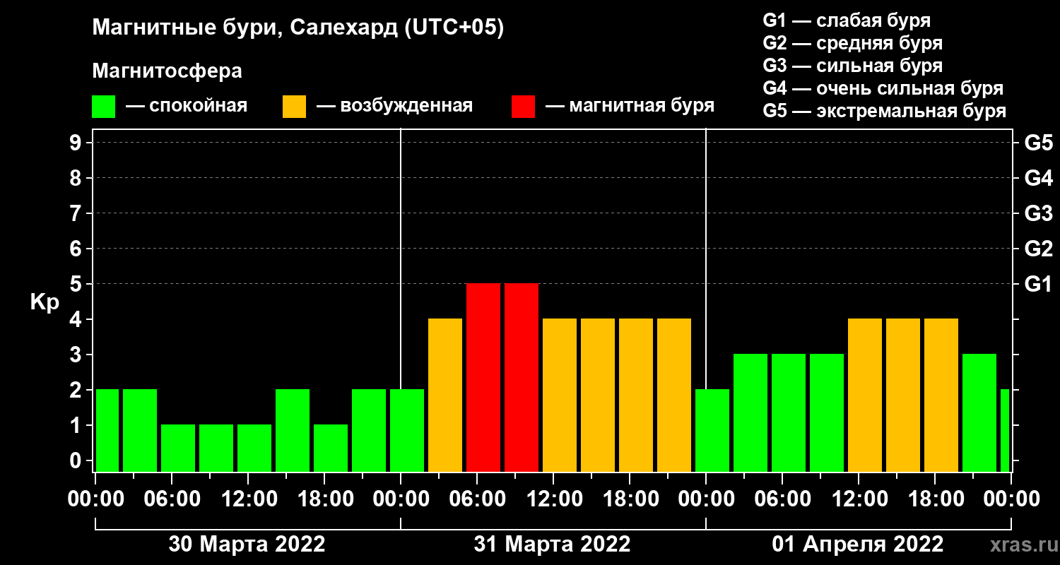 Магнитные бури в Салехарде 1 апреля 2022 года