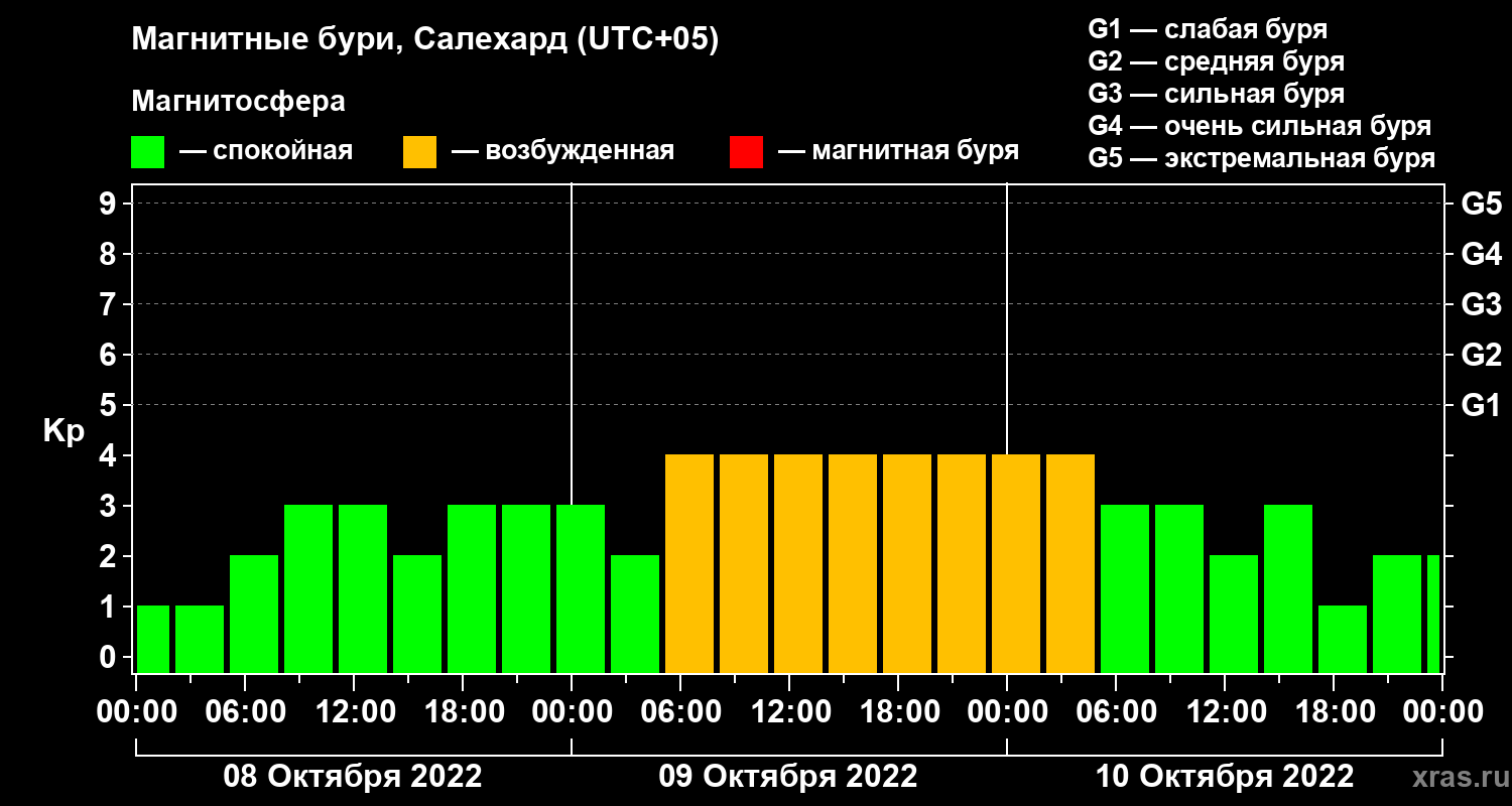 Магнитные бури в Салехарде 10 октября 2022 года