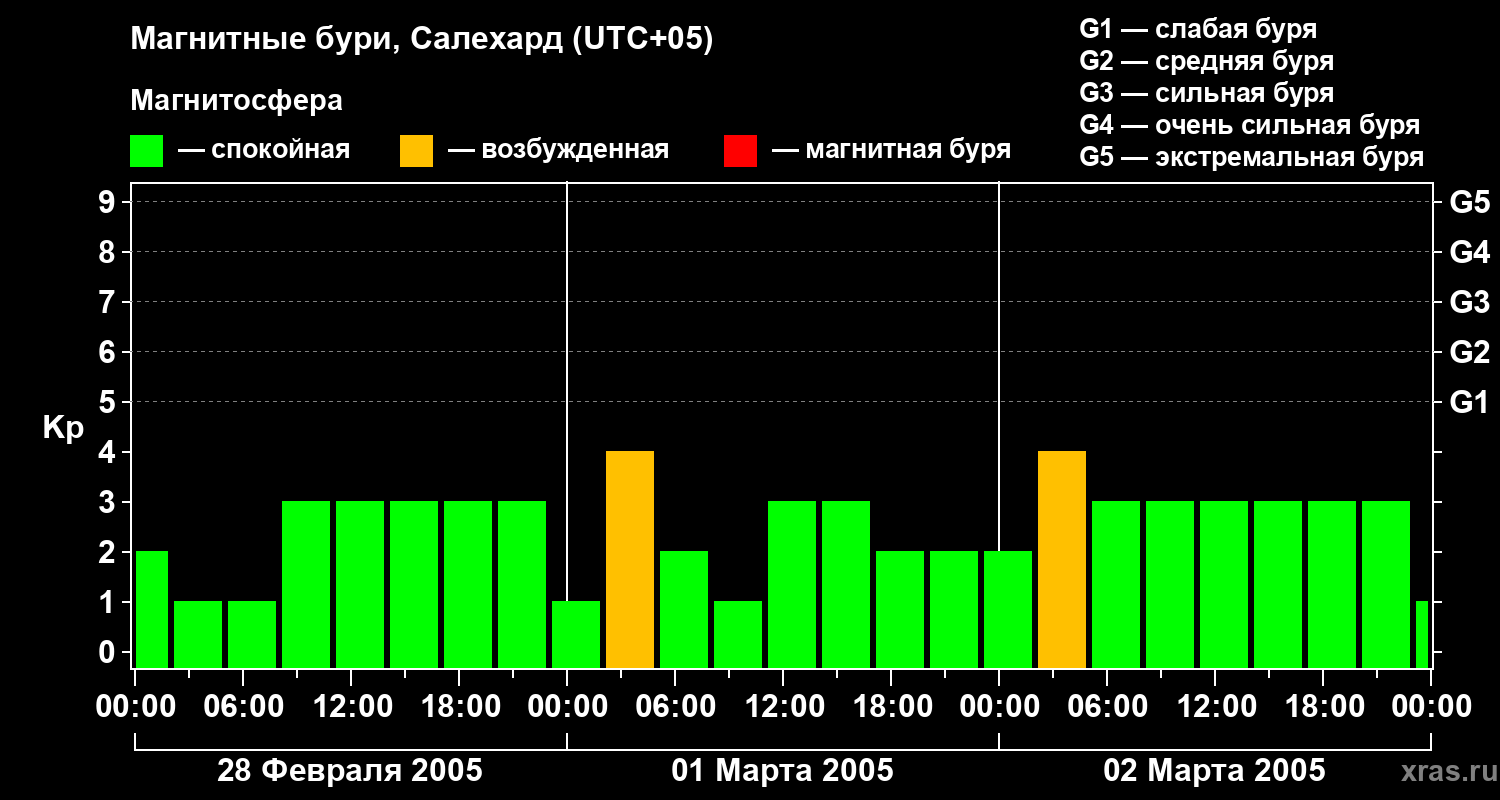 Магнитные бури в Салехарде — 2 марта 2005 года