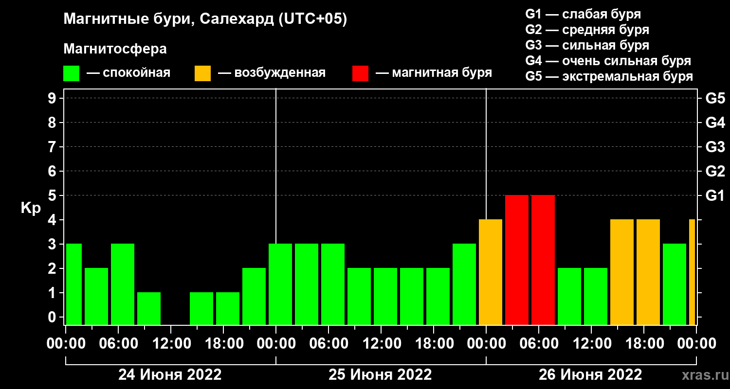 Магнитные бури в Салехарде 26 июня 2022 года