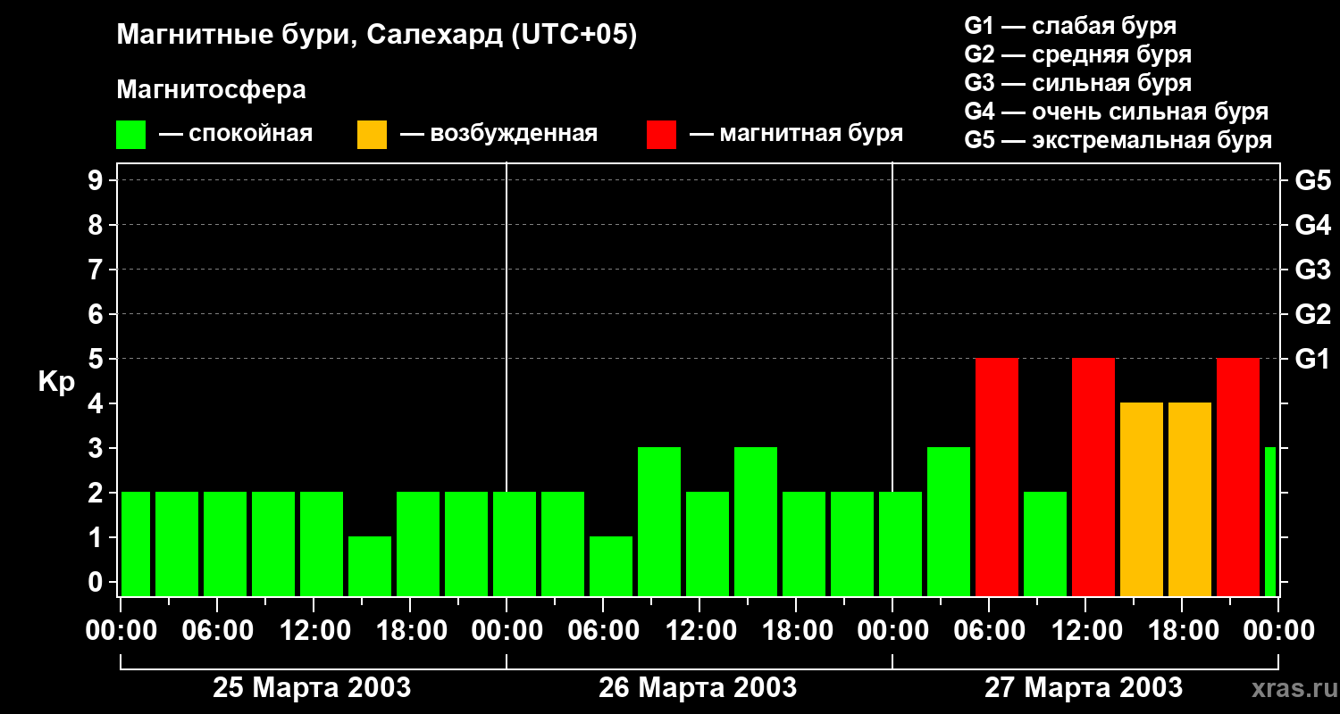 Магнитные бури в Салехарде — 27 марта 2003 года
