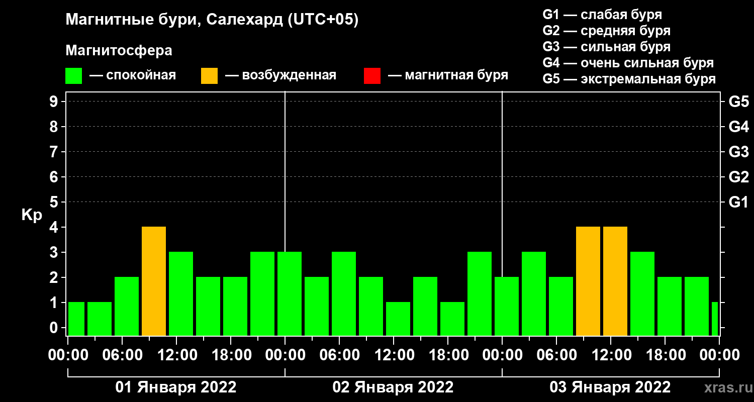 Магнитные бури в Салехарде 3 января 2022 года