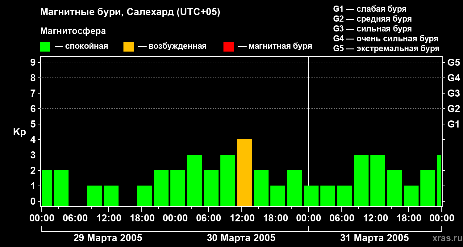 Магнитные бури в Салехарде — 31 марта 2005 года