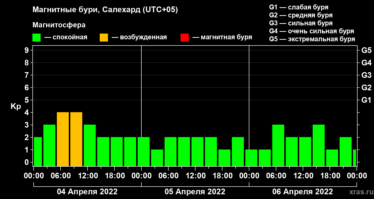 Магнитные бури в Салехарде 6 апреля 2022 года