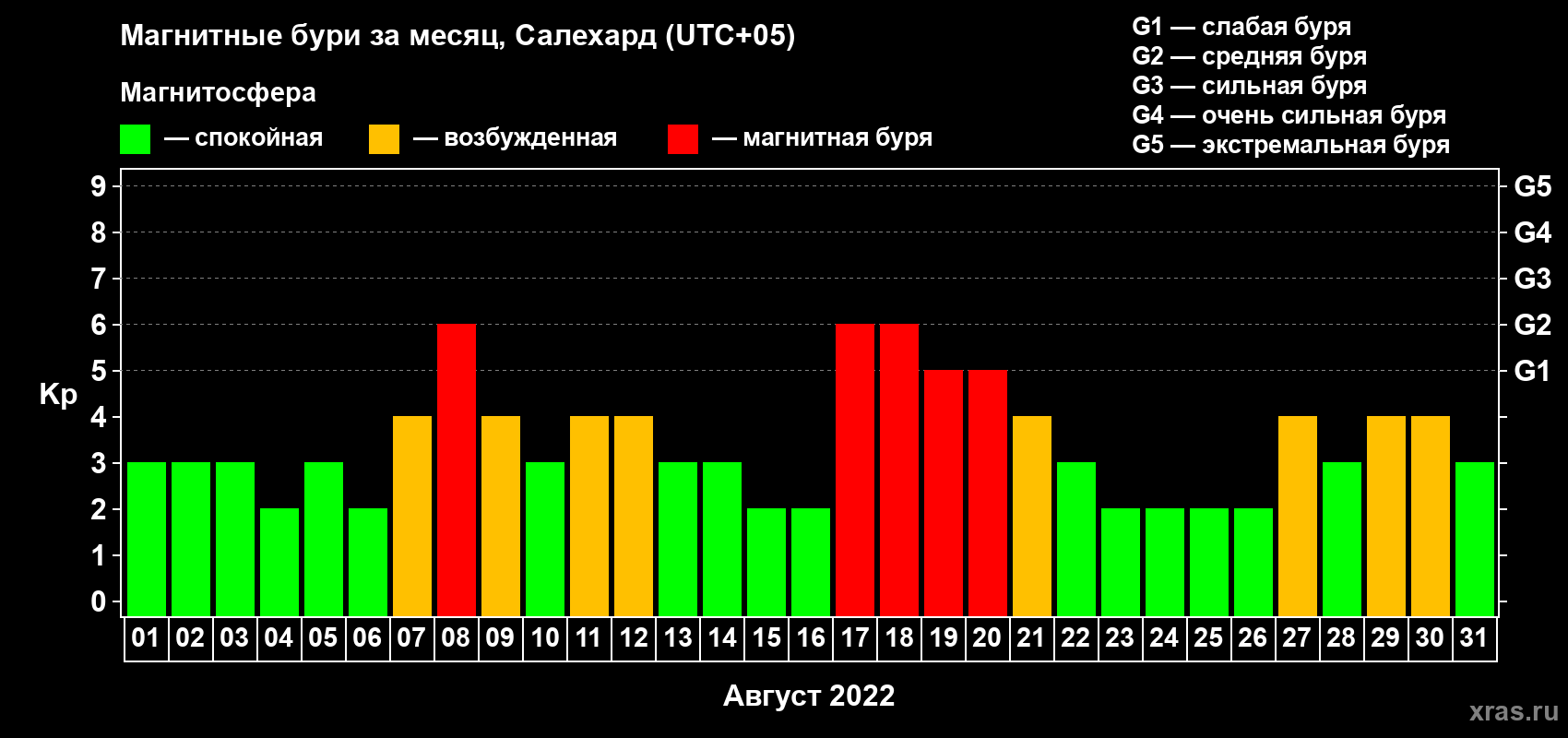 Список магнитных бурь в августе 2022 года