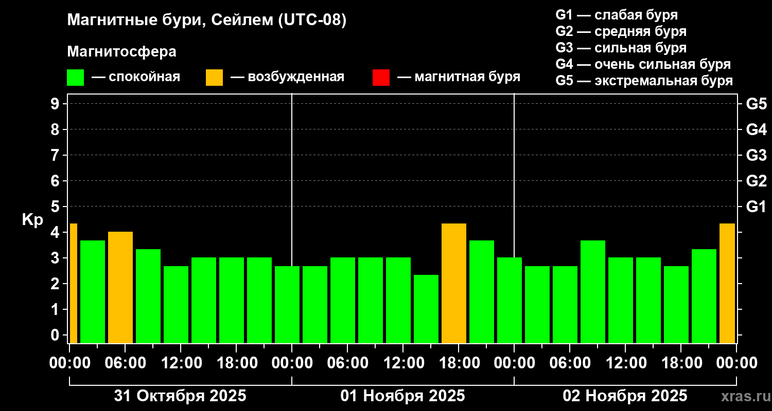 Магнитные бури в Сейлеме 2 ноября 2025 года