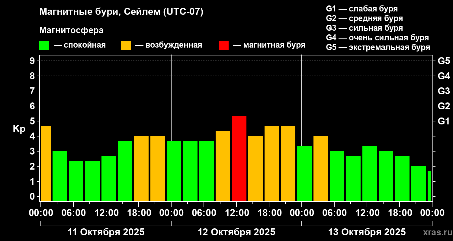 Магнитные бури в Сейлеме 13 октября 2025 года