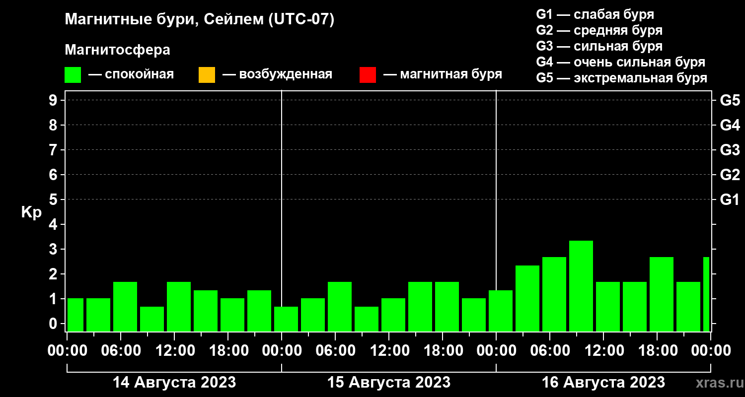 Магнитные бури в Сейлеме 16 августа 2023 года