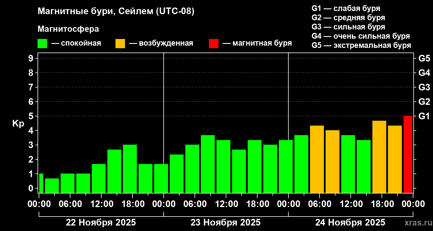 Магнитные бури в Сейлеме — 24 ноября 2025 года