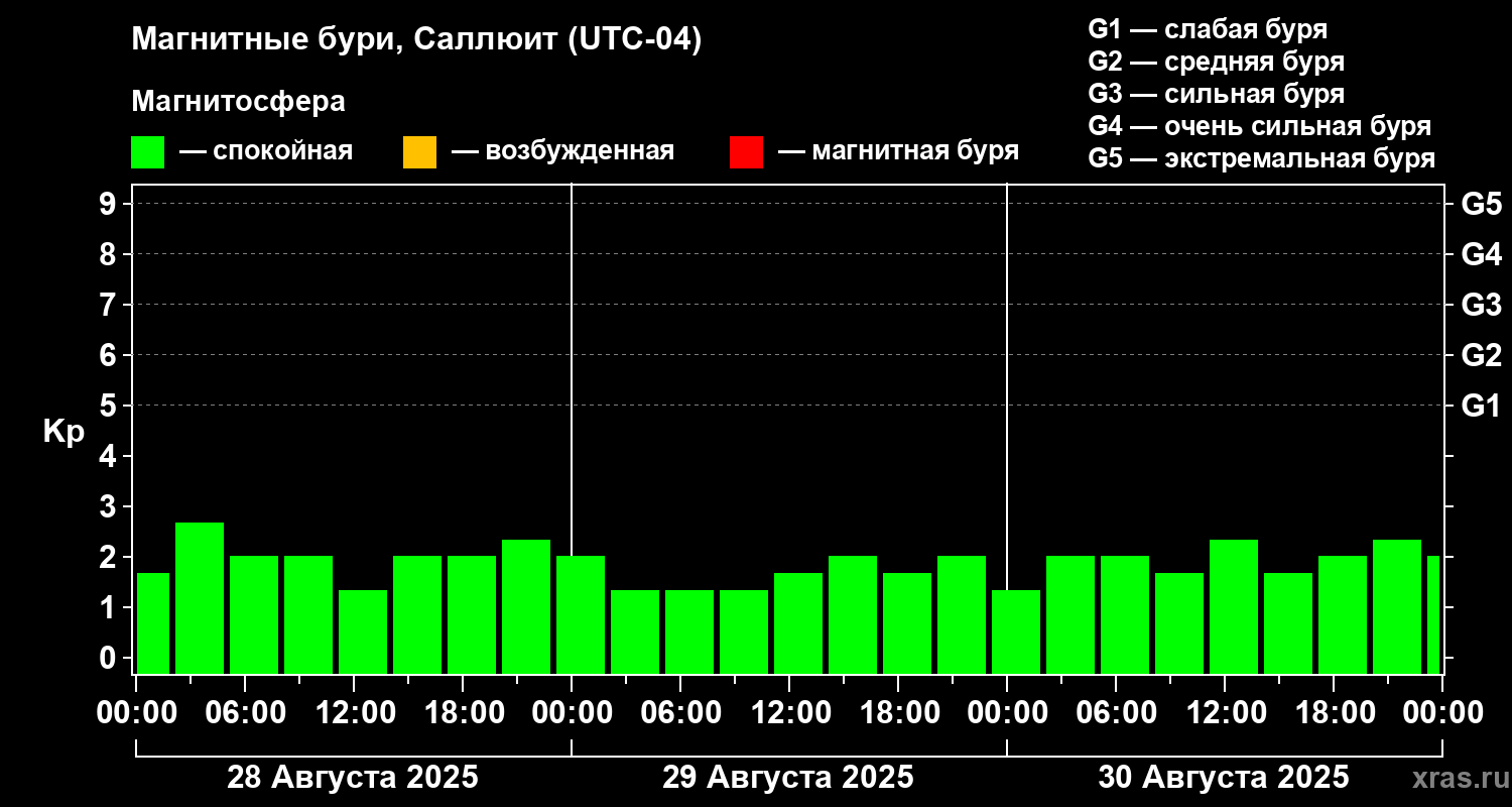 Магнитные бури в Саллюите — 30 августа 2025 года