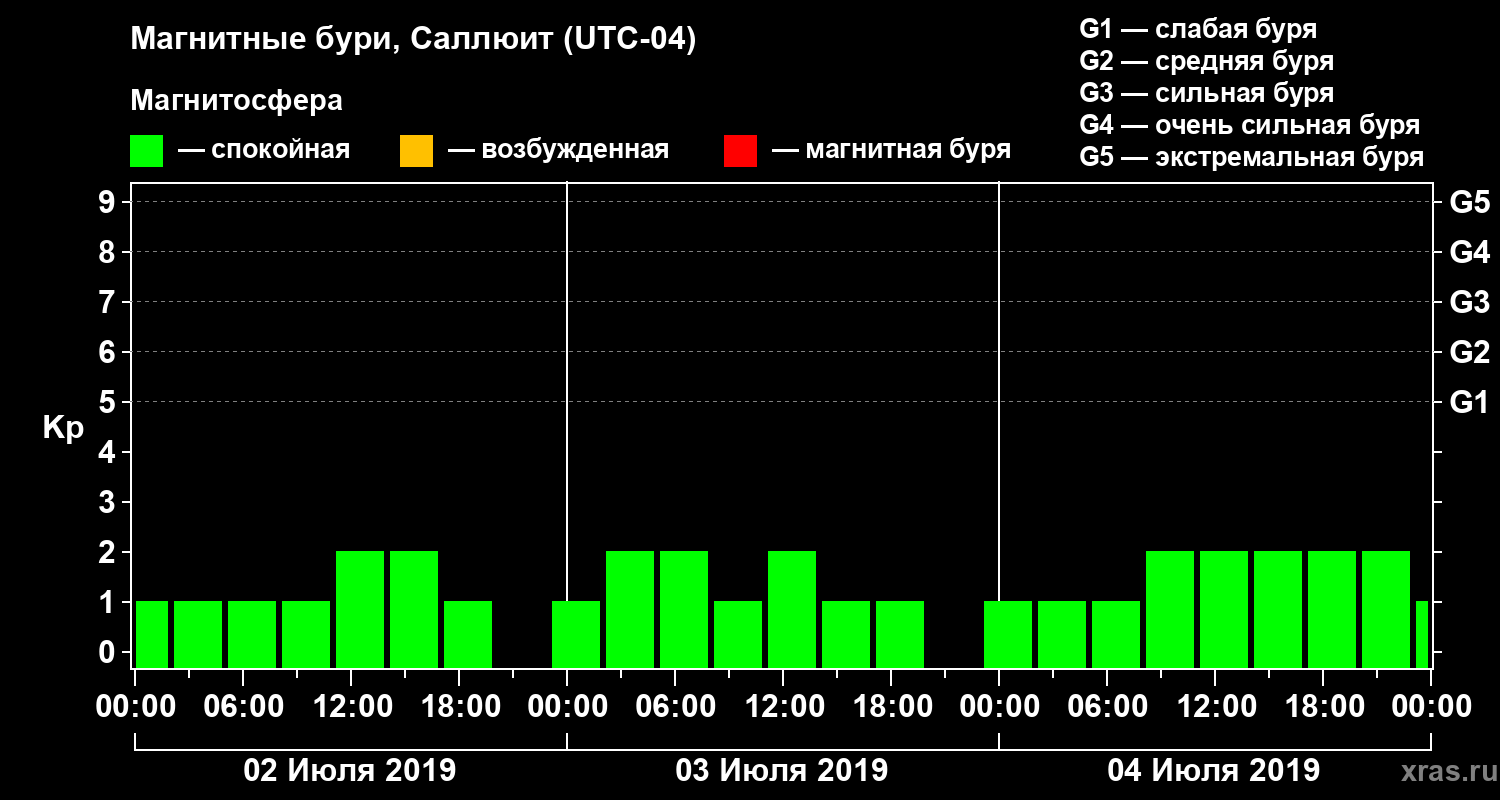 Магнитные бури в Саллюите — 4 июля 2019 года