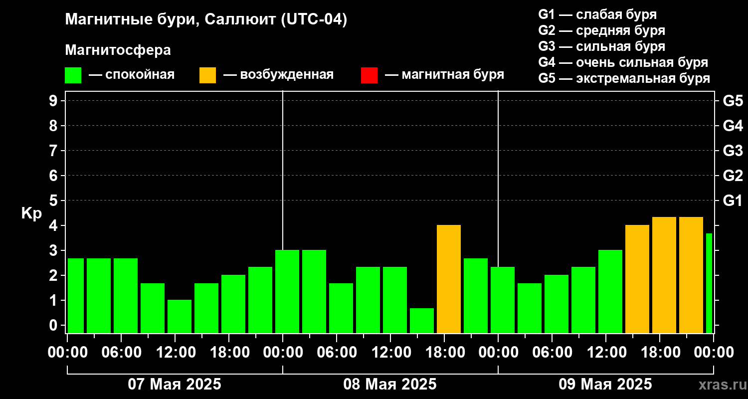 Магнитные бури в Саллюите — 9 мая 2025 года