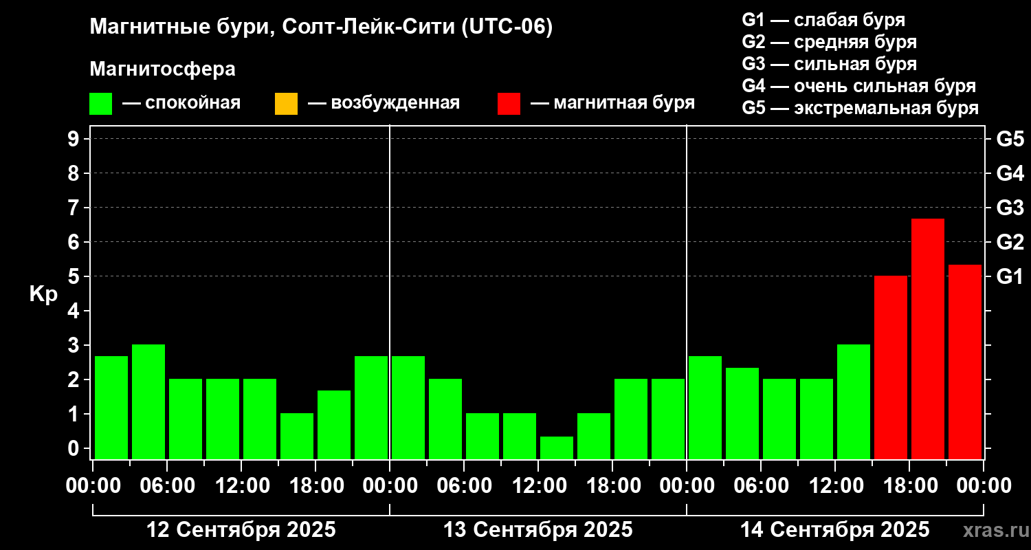 Магнитные бури Солт-Лейк-Сити 14 сентября 2025 года