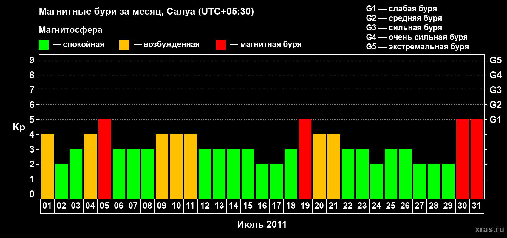 Магнитные бури в Салуе в июле 2011 года