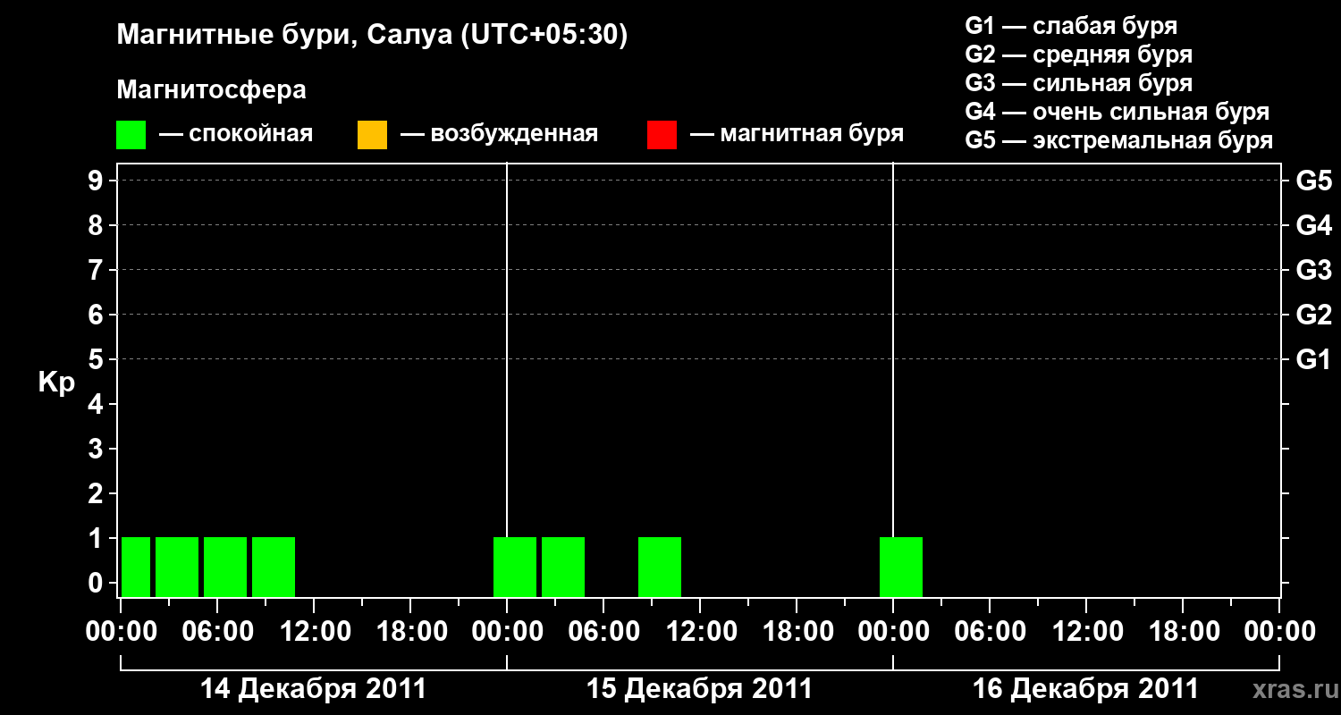 Изменения геомагнитного индекса Kp с 14 по 16 декабря 2011 года для средних широт