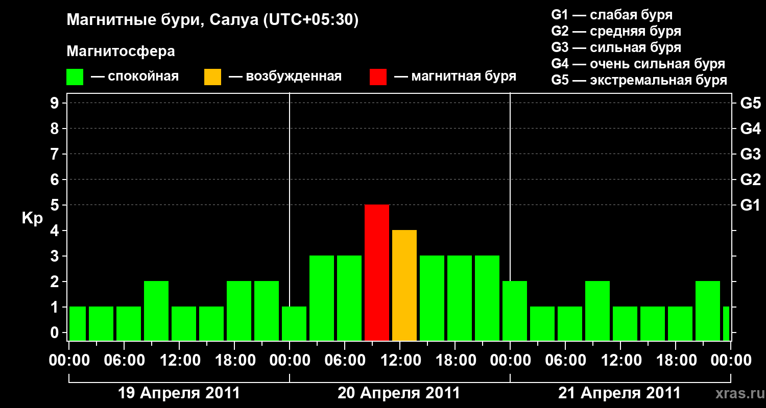 Магнитные бури в Салуе — 21 апреля 2011 года