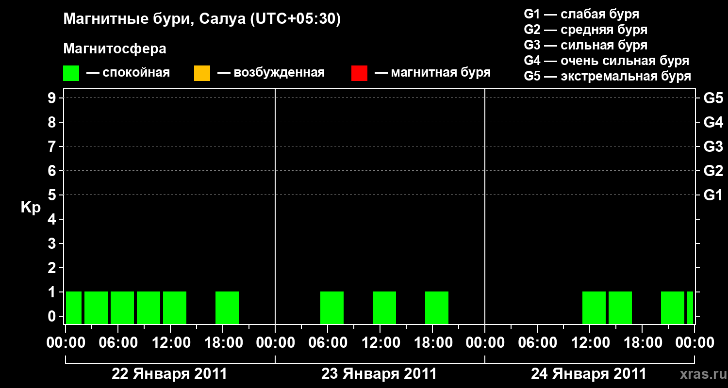 Изменения геомагнитного индекса Kp с 22 по 24 января 2011 года для средних широт