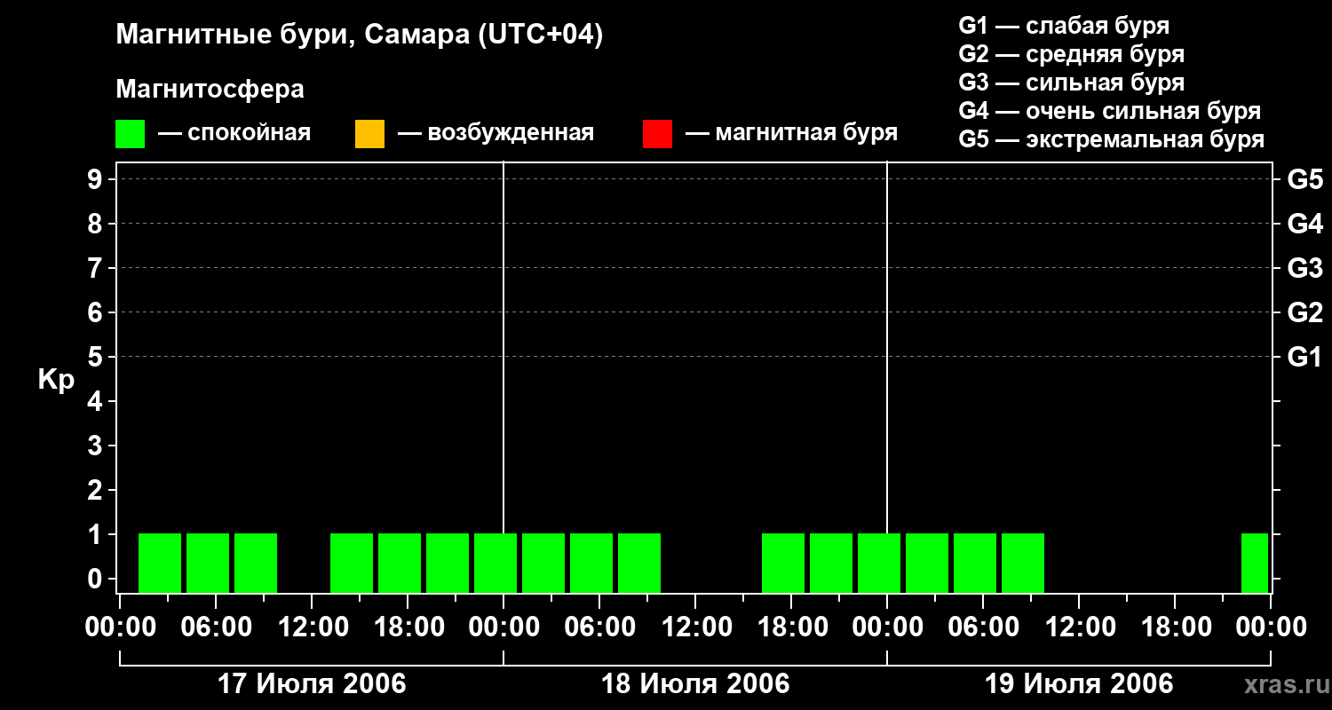 Изменения геомагнитного индекса Kp с 17 по 19 июля 2006 года для средних широт