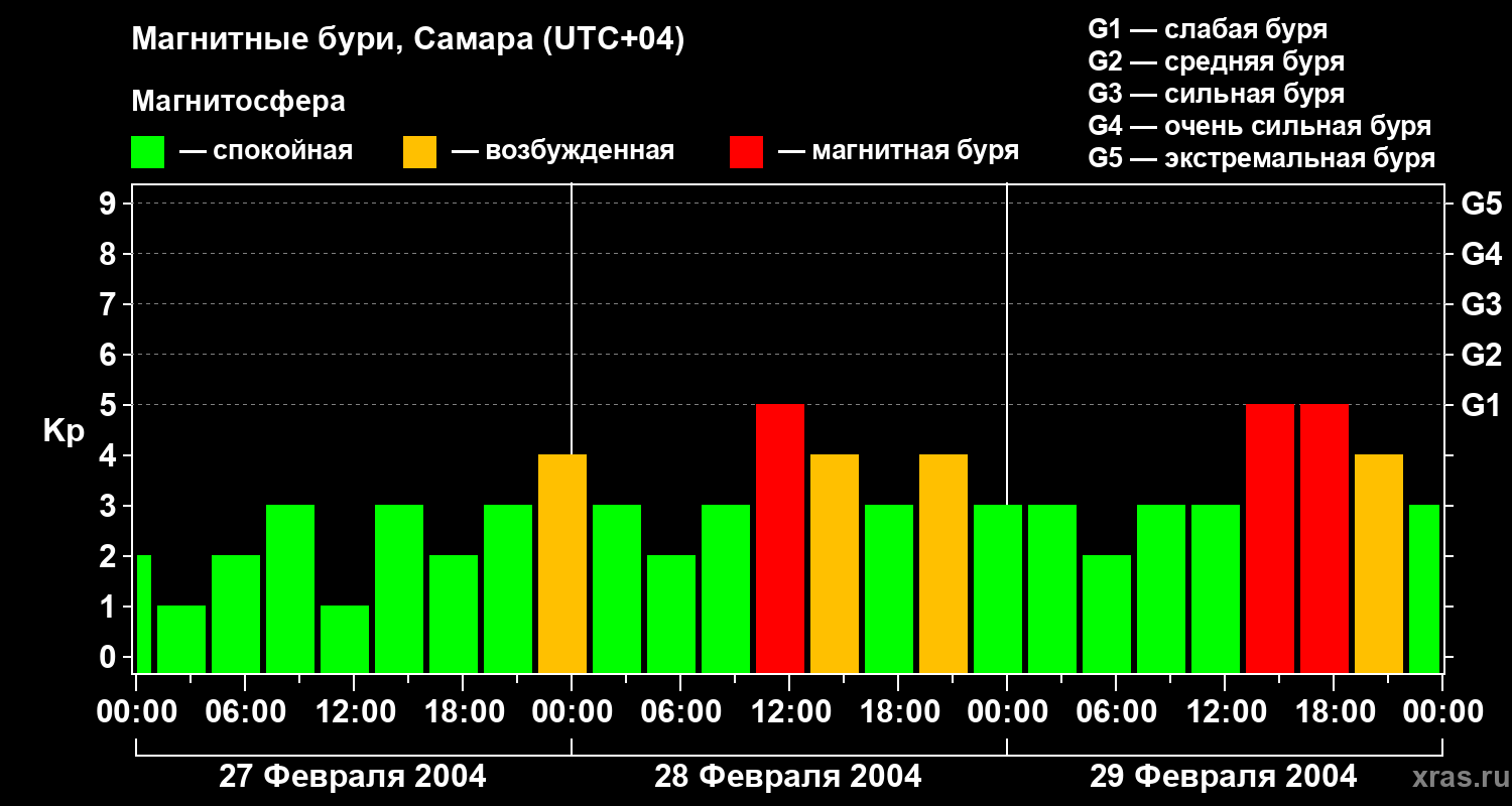 Магнитные бури в Самаре — 29 февраля 2004 года