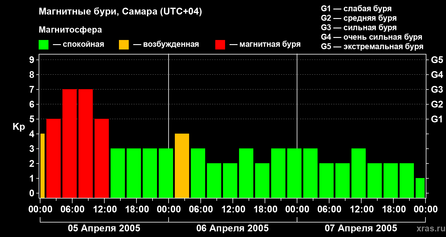 Магнитные бури в Самаре — 7 апреля 2005 года