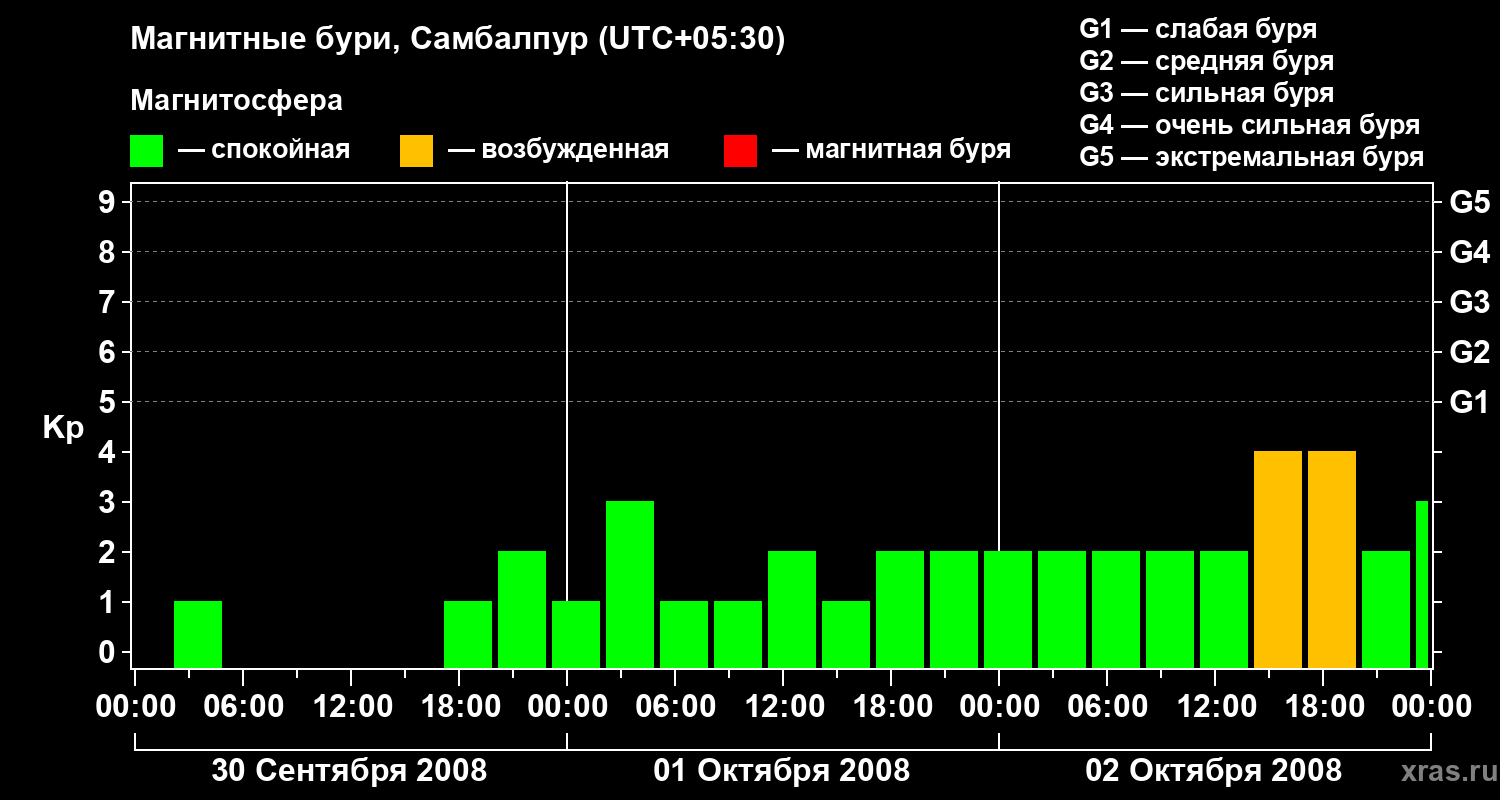 Магнитные бури в Самбалпуре — 2 октября 2008 года