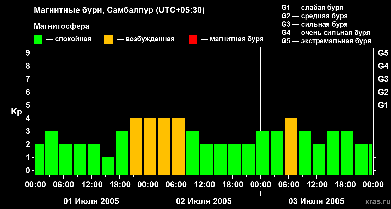 Магнитные бури в Самбалпуре — 3 июля 2005 года