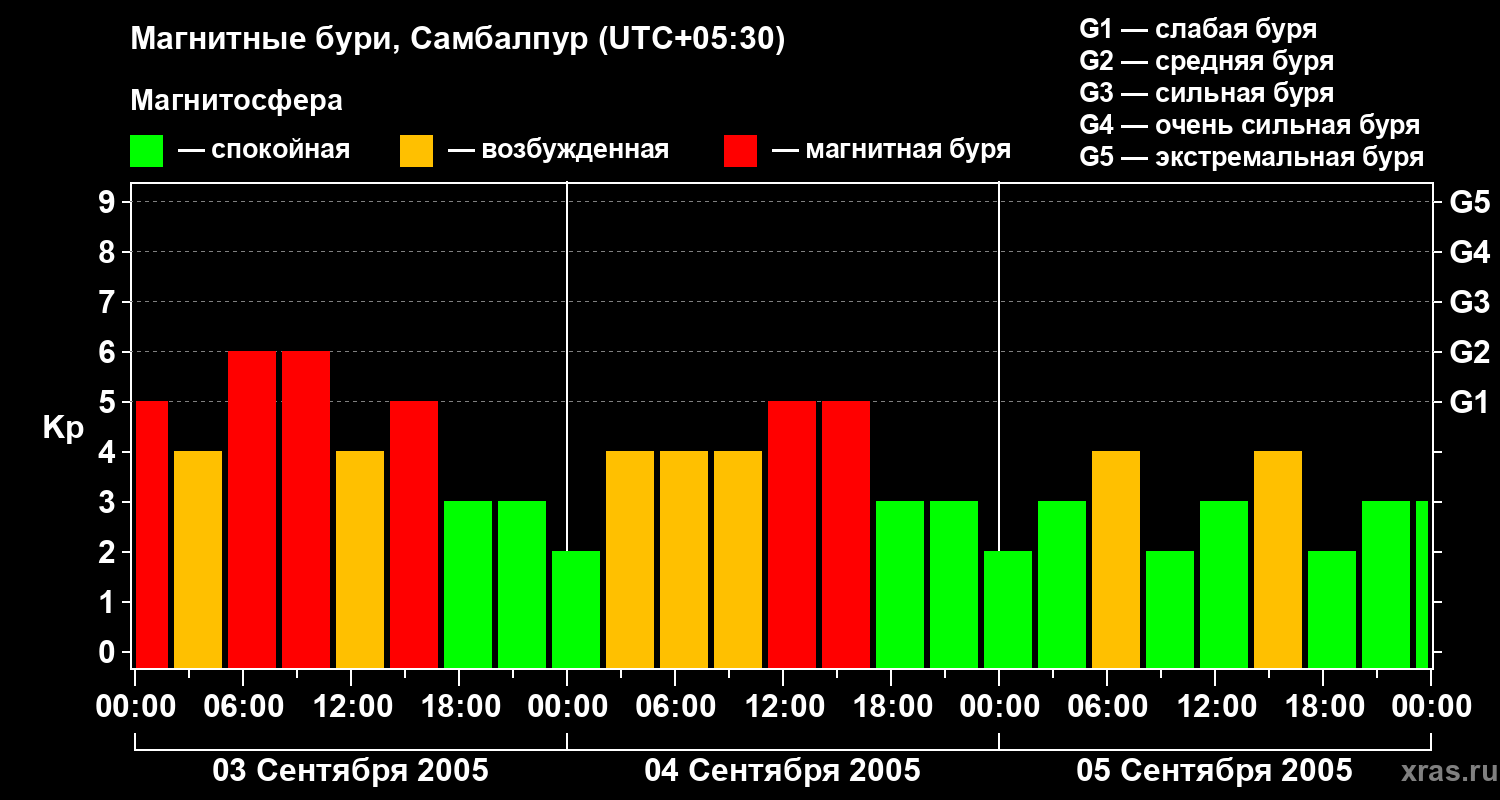 Магнитные бури в Самбалпуре 5 сентября 2005 года