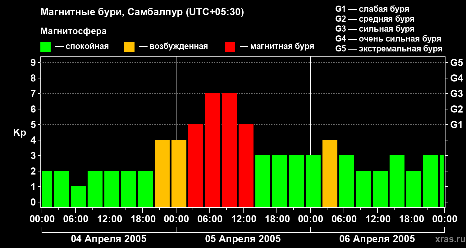 Магнитные бури в Самбалпуре в апреле 2005 года