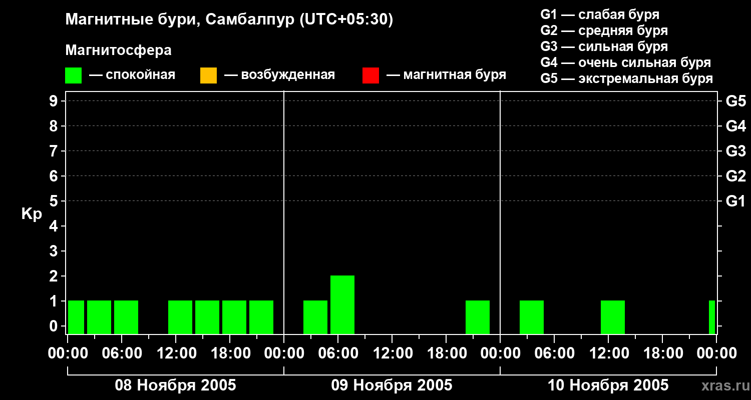Магнитные бури в Самбалпуре 10 ноября 2005 года