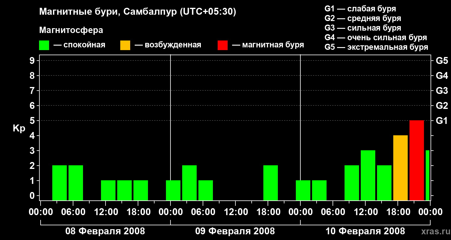 Магнитные бури в Самбалпуре — 10 февраля 2008 года