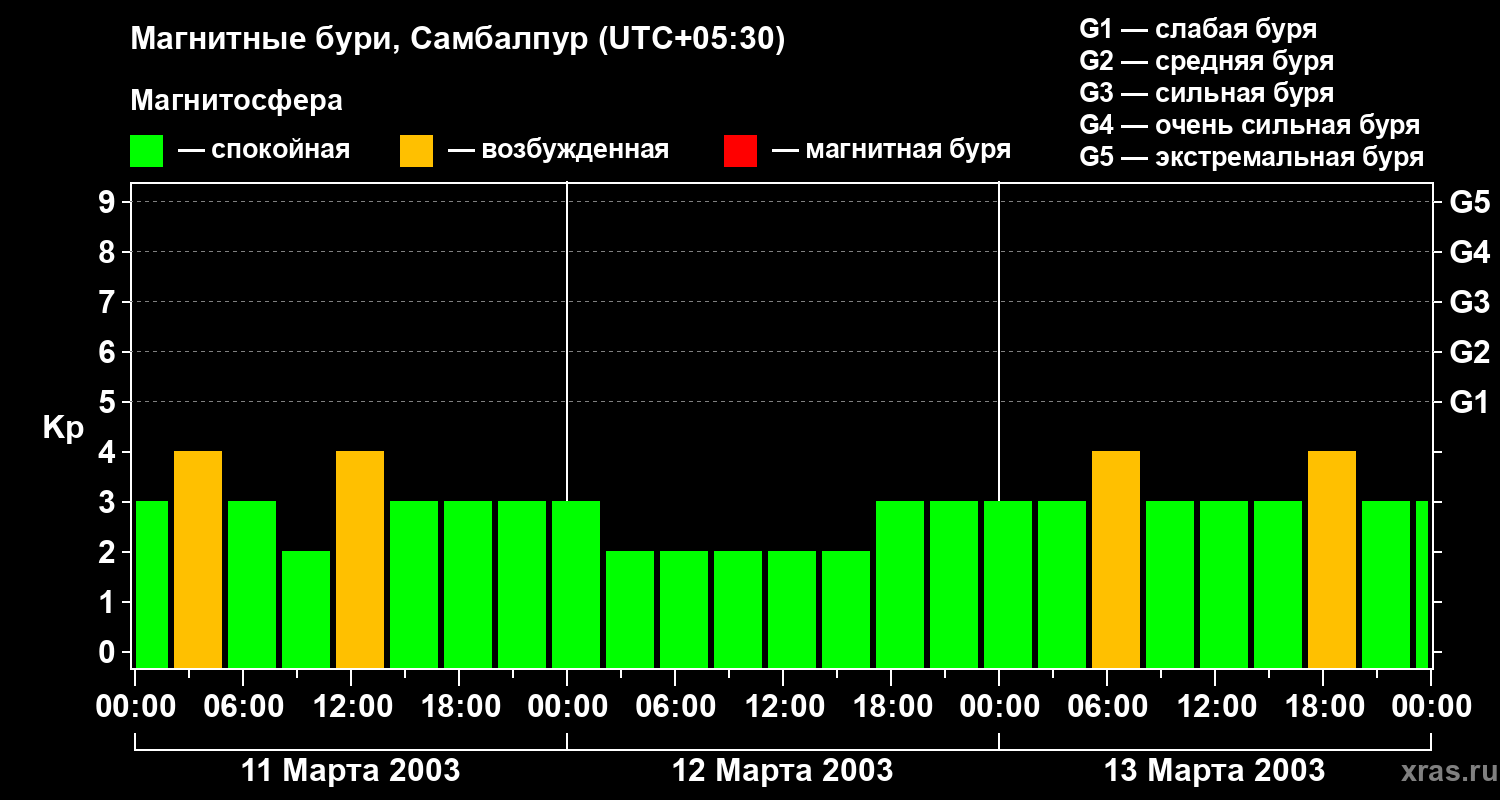 Магнитные бури в Самбалпуре — 13 марта 2003 года
