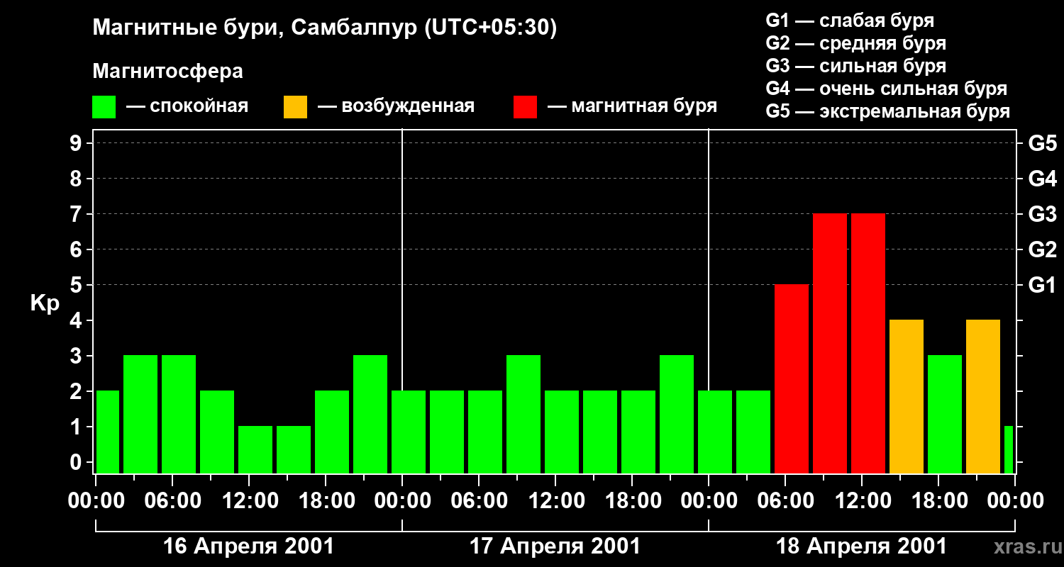 Магнитные бури в Самбалпуре в апреле 2001 года